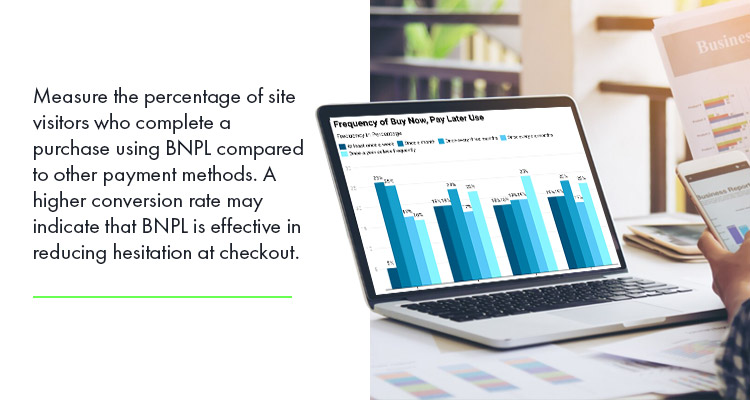 • Conversion Rate (CVR) – Measure the percentage of site visitors who complete a purchase using BNPL compared to other payment methods. A higher conversion rate may indicate that BNPL is effective in reducing hesitation at checkout.