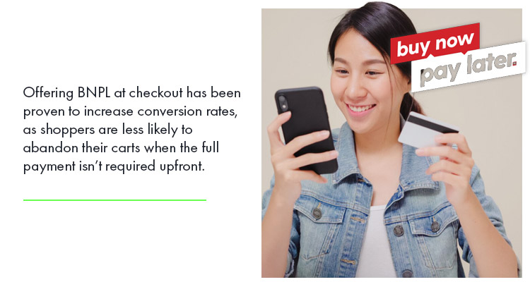 Offering BNPL at checkout has been proven to increase conversion rates, as shoppers are less likely to abandon their carts when the full payment isn’t required upfront.