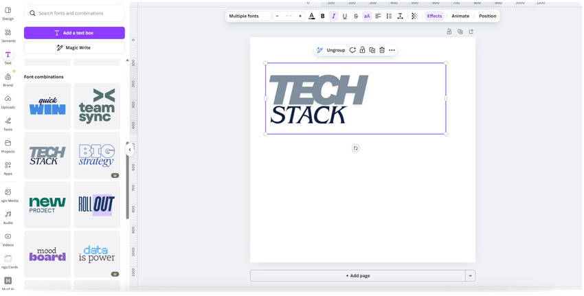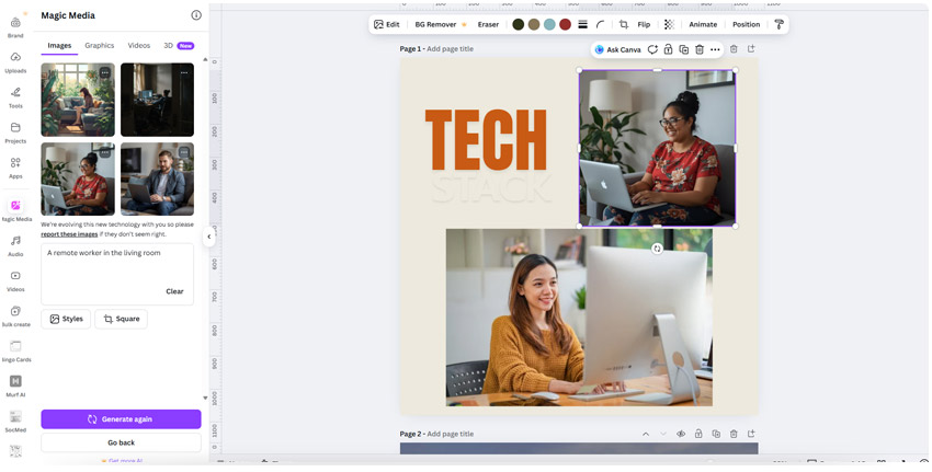 - Magic Write – Instantly generate taglines, captions, or blog snippets to speed up your creative process.