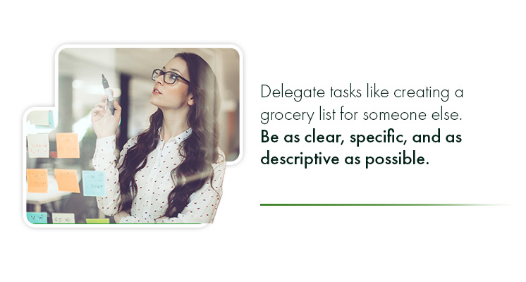 Delegate tasks like creating a grocery list for someone else. Be as clear, specific, and as descriptive as possible.