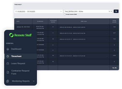 This integration with the Remote Staff Portal makes managing remote timesheets simple and reliable.