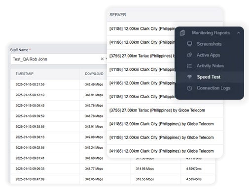 Connectivity matters for remote work. DIWA tests staff internet speeds and captures device details to ensure stable performance.